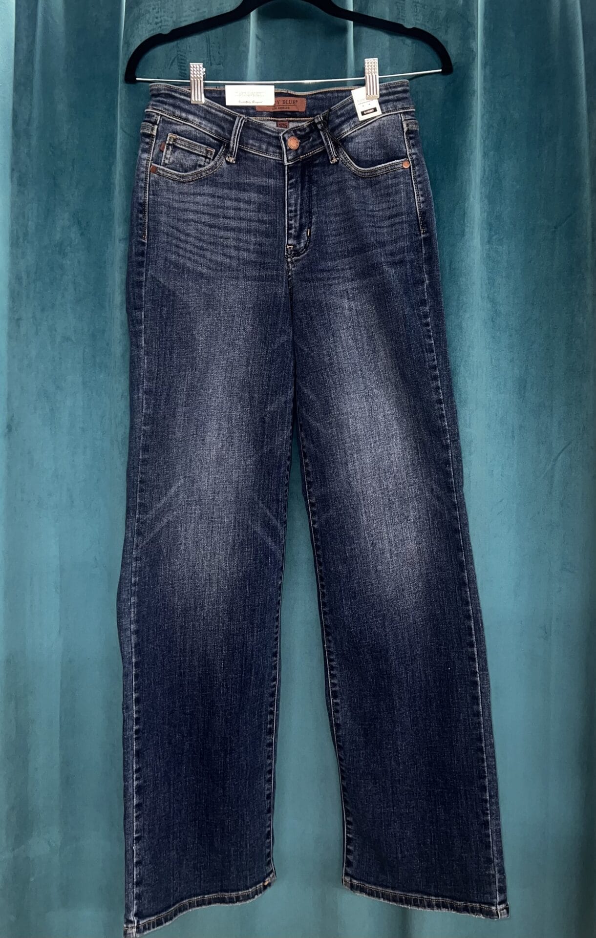 The Judy Blue High Waisted V Front Vintage Wash Straight Leg Denim Blue Jeans are a stylish and flattering choice for any denim lover.